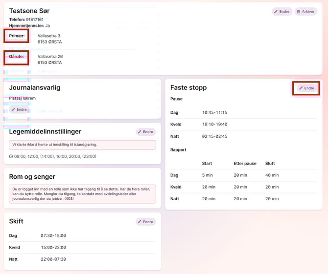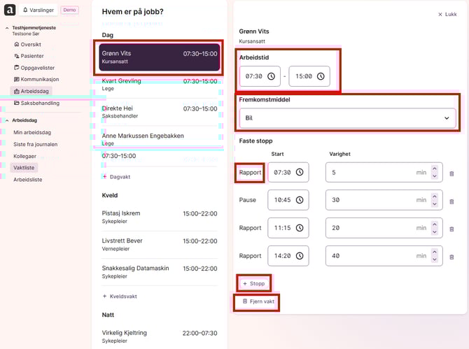 - Juster rapport- og lunsjtider for den enkelte pleieren.