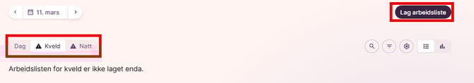- Du må ha minst én vakt i vaktlisten for å lage en arbeidsliste.