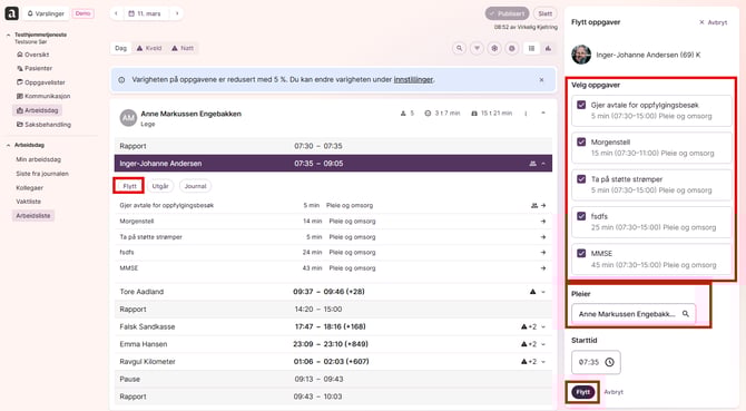 - Klikk "Flytt oppgaver" for å flytte oppgaver til en annen pleier.