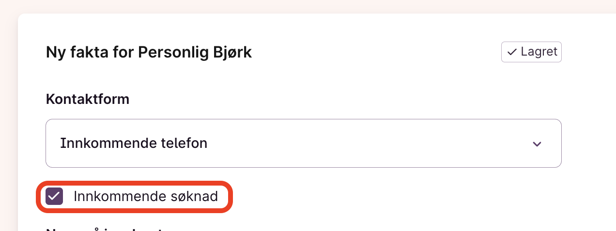 Hvis søknaden er muntlig, legger du den til under Fakta > Kontakt
