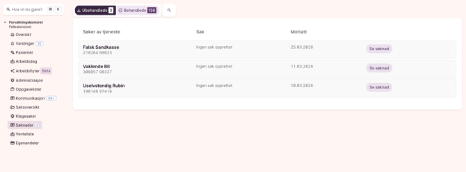 - Digitale søknader som kommer inn via Mitt Aidn, finner du under Søknader i venstremenyen.