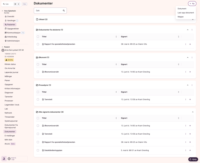 ⚠️Dokumenter i Dokumentsenteret har ikke samme krav til redigeringskontroll som registreringer i løpende journal. All helsehjelp skal fortsatt dokumenteres i løpende journal.