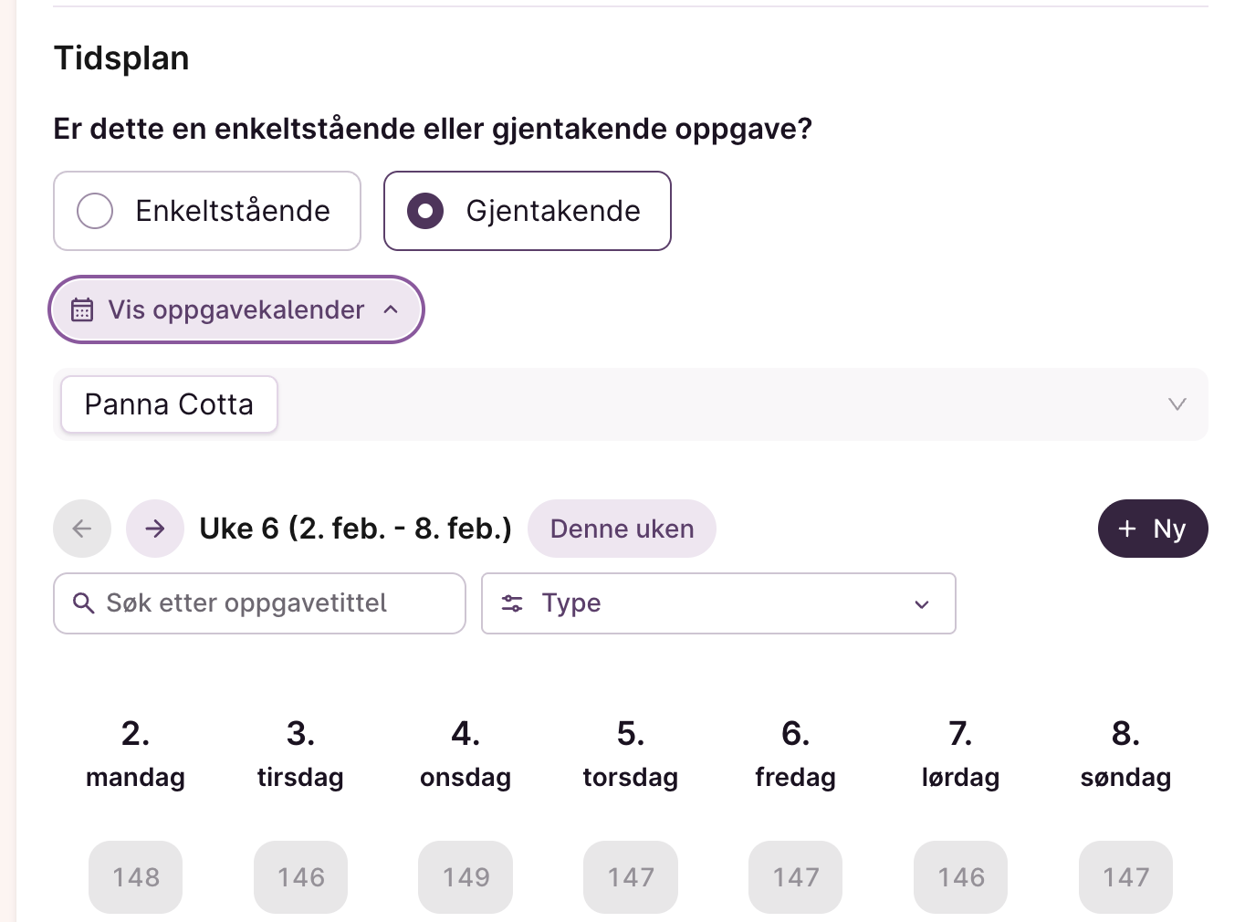 Kalenderen er også tilgjengelig når man oppretter en ny oppgave, under “tidsplan”.