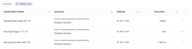 Hvis alle grunnlagene ser riktig ut, kan du godkjenne alle i ett trykk. Da velger du ‘Godkjenn alle’ øverst i listen.