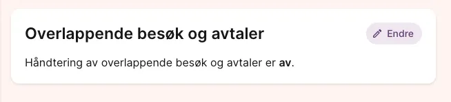 Slå på innstillingen for håndtering av overlappende besøk og avtaler