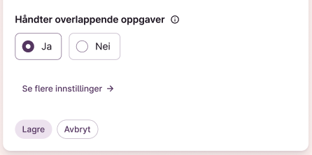 ✅ Slå på innstillingen “Håndter overlappende oppgaver” – når den er slått på vil du få opp når det er overlapp i oppgaver før en arbeidsliste er laget
