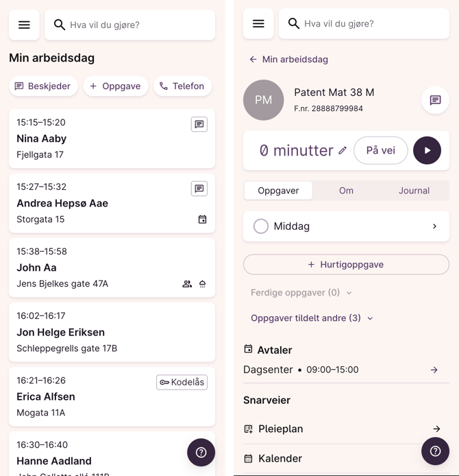 Ps: Prøv å sette samme tidsrom for oppgaver som skal utføres samtidig. Det gir bedre ruteplanlegging. Se hvordan lage oppgaver her.