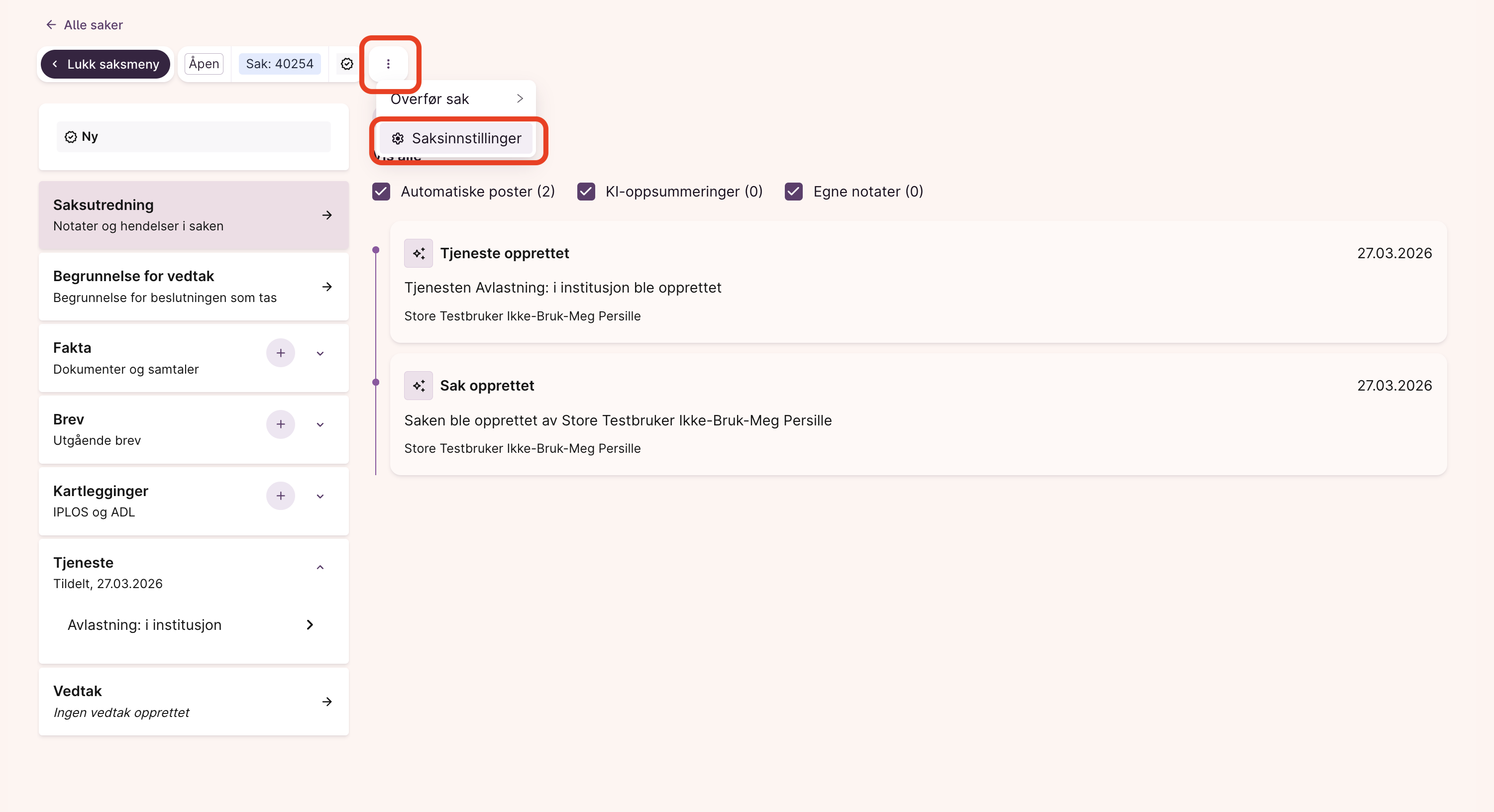 - Gå til saksinnstillinger fra menyen med tre prikker øverst til høye