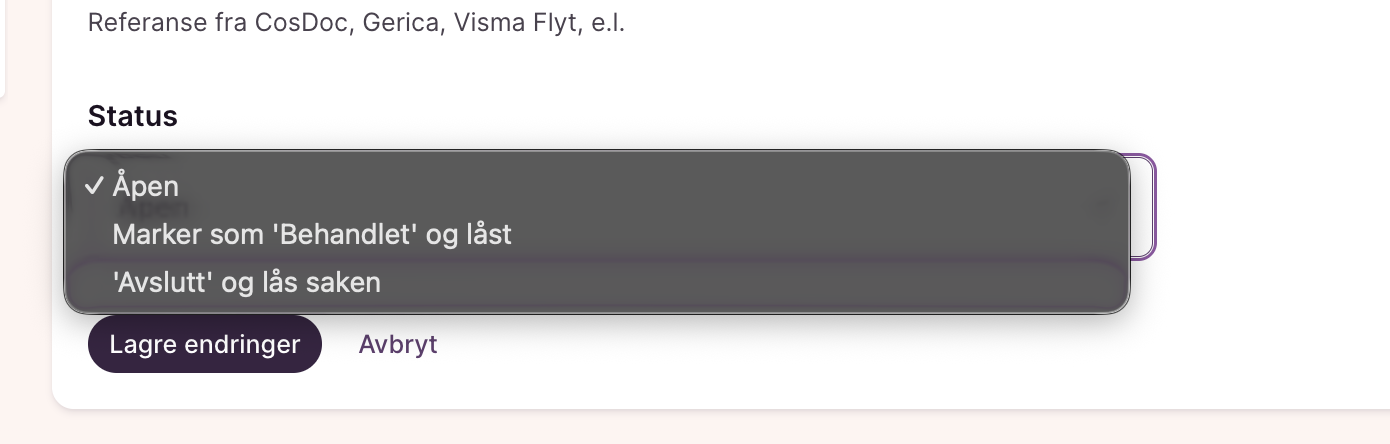 Slik kan du endre statusen fra en sak fra åpen til behandlet eller avsluttet