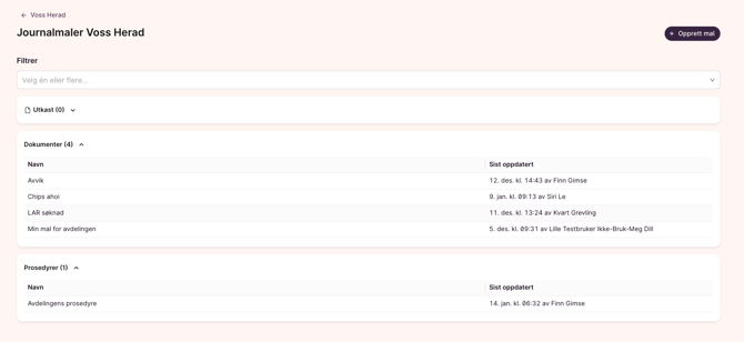 Systemadministratorer og avdelingsledere kan lage egne maler for dokumenter og prosedyrer. Malene kan deles med én eller flere avdelinger.