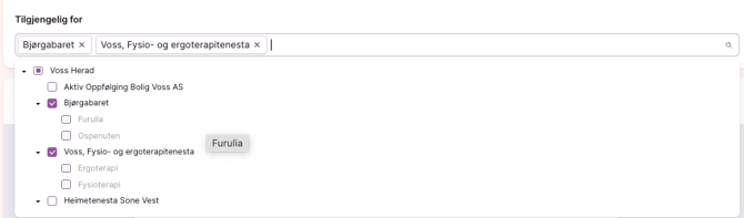 2. Velg hvem som skal skal ha tilgang til malen. Du kan velge å gjøre den tilgjengelig for alle avdelinger i hele kommunen eller én eller flere spesifikke avdelinger.