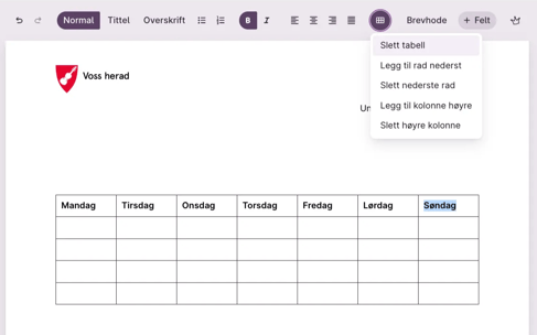 • Brevhode: Trykk på Brevhode for å legge til kommunevåpen og kontaktinformasjon. Du kan redigere innholdet, eller fjerne det med backspace.