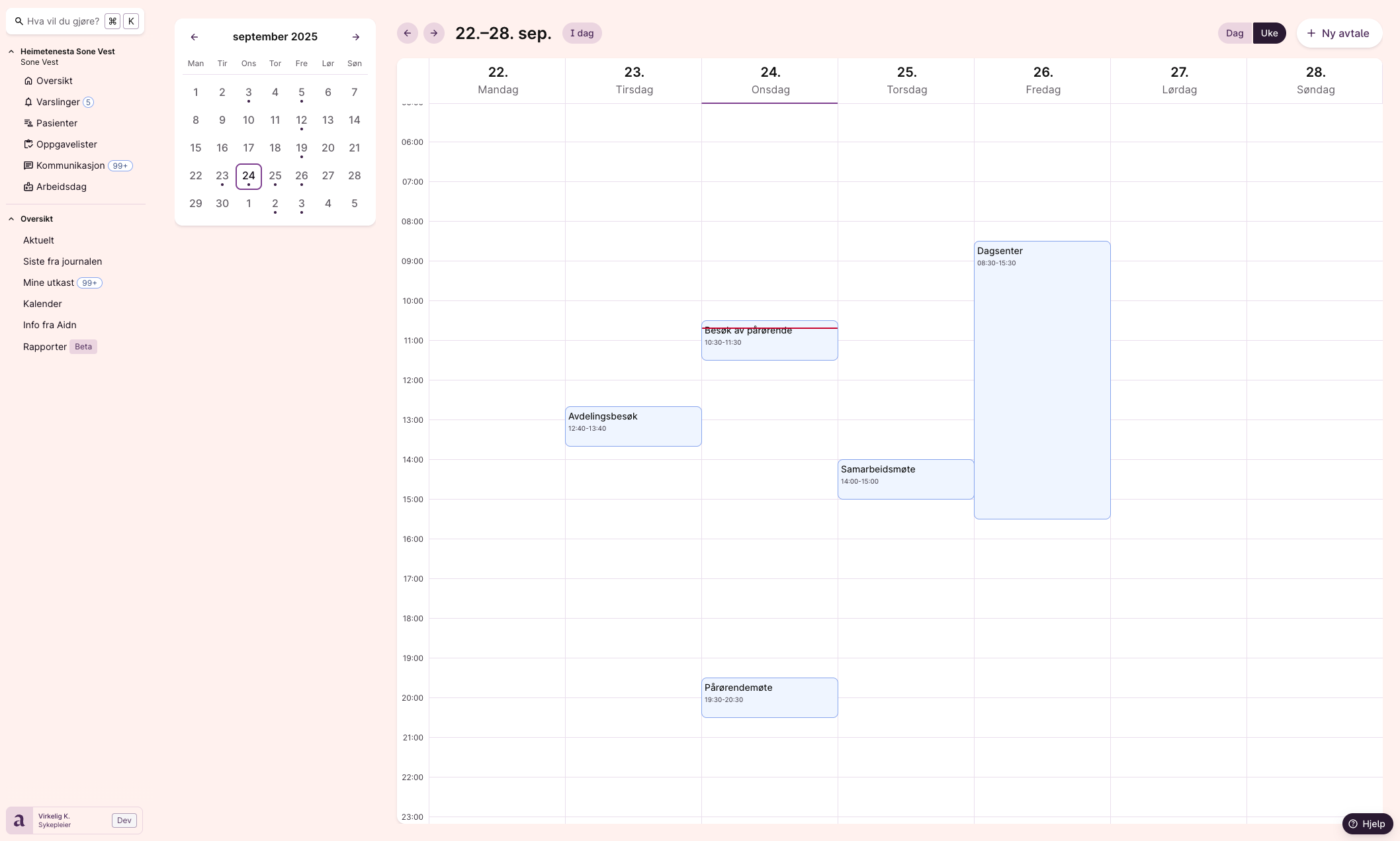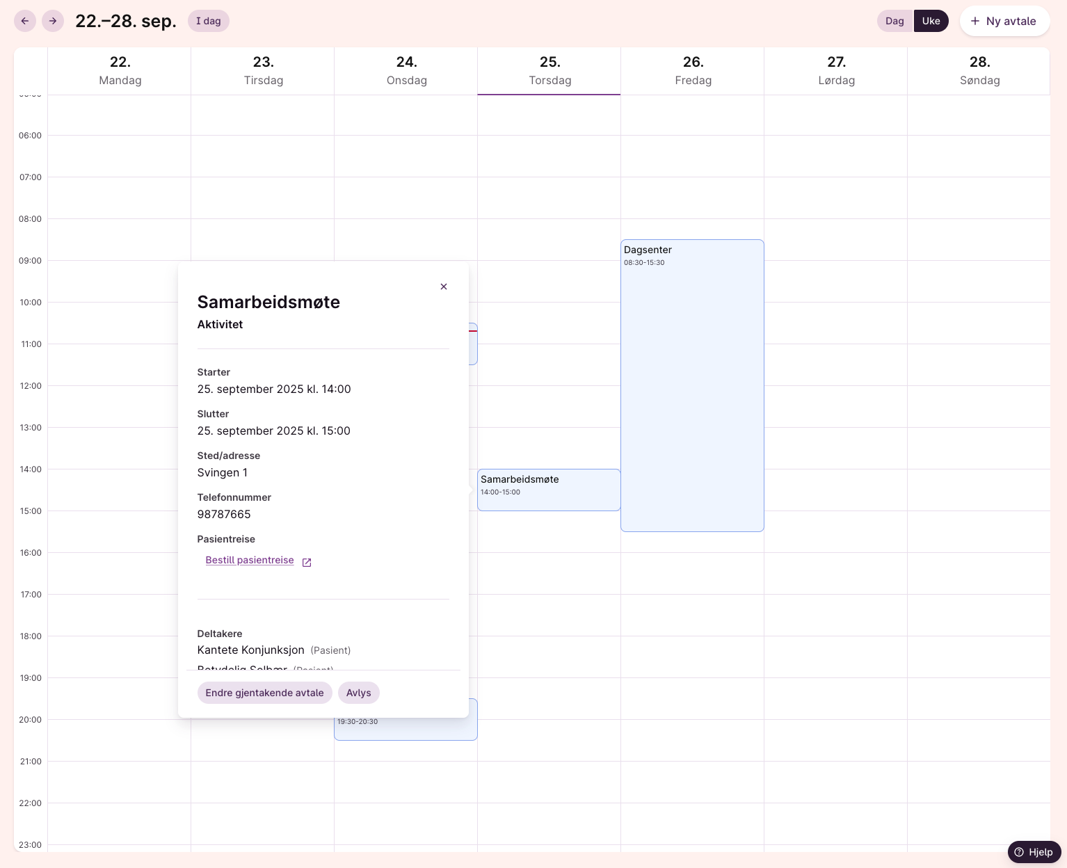 Kalender kan brukes for avdeling og/eller pasient, og hjelper dere å samordne avtaler i et felles bilde