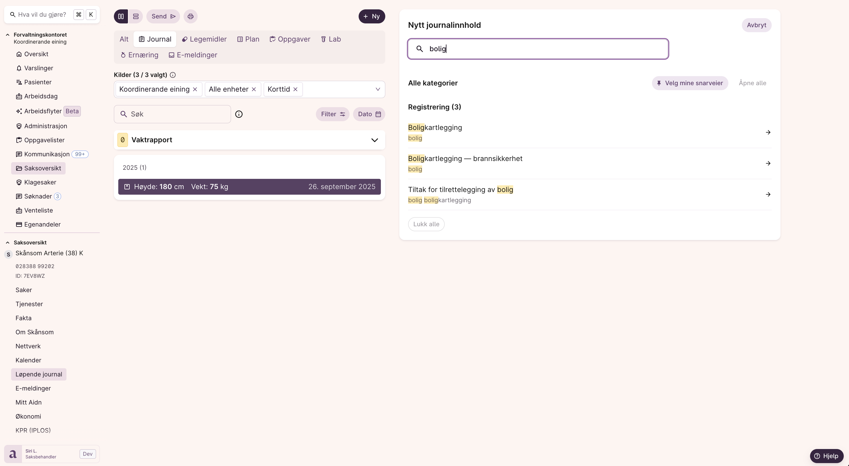 I løpende journal finner du flere kartlegginger, blant annet:
