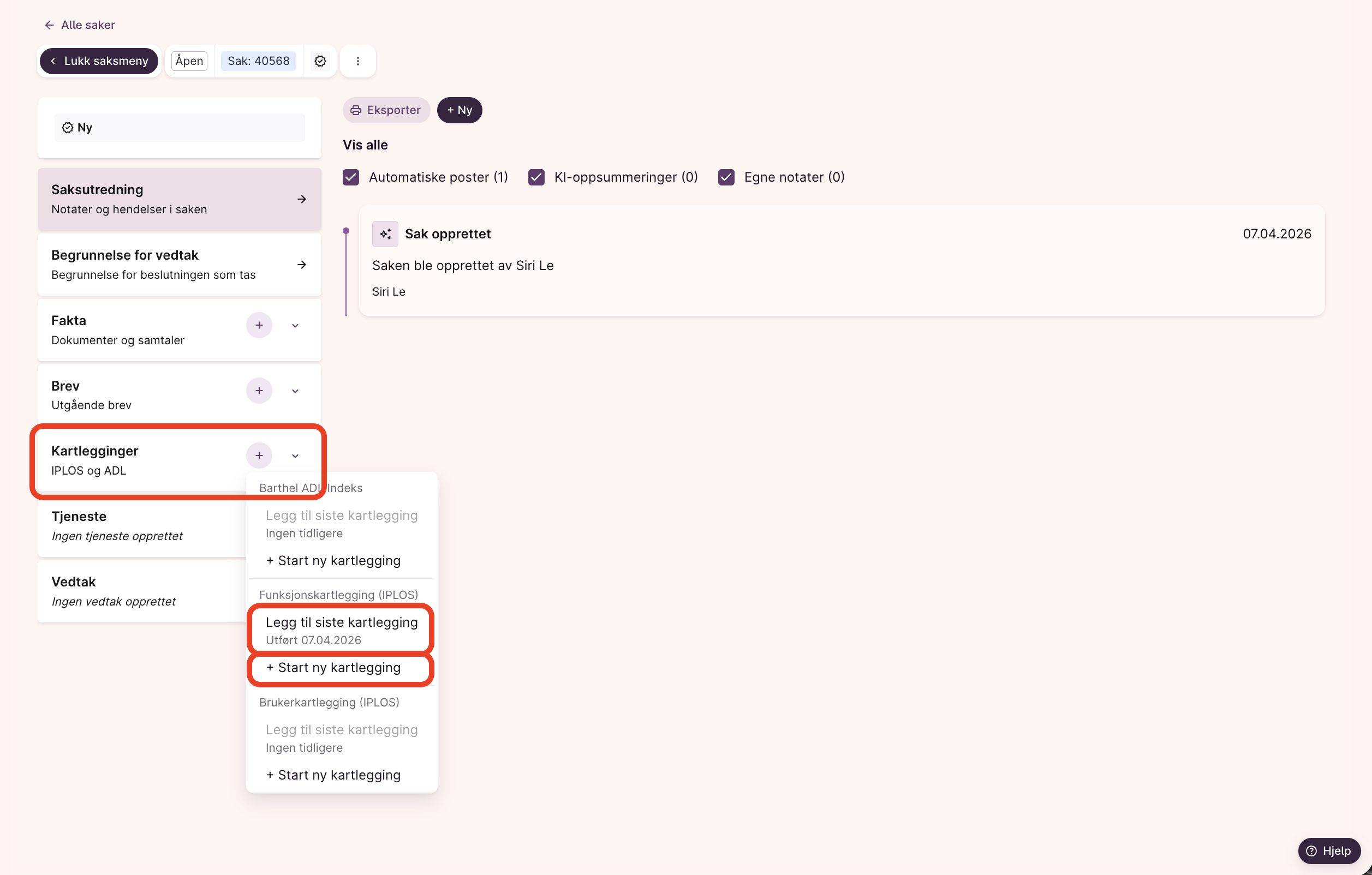 Her forklarer vi hvordan du dokumenterer kartlegginger på en sak
