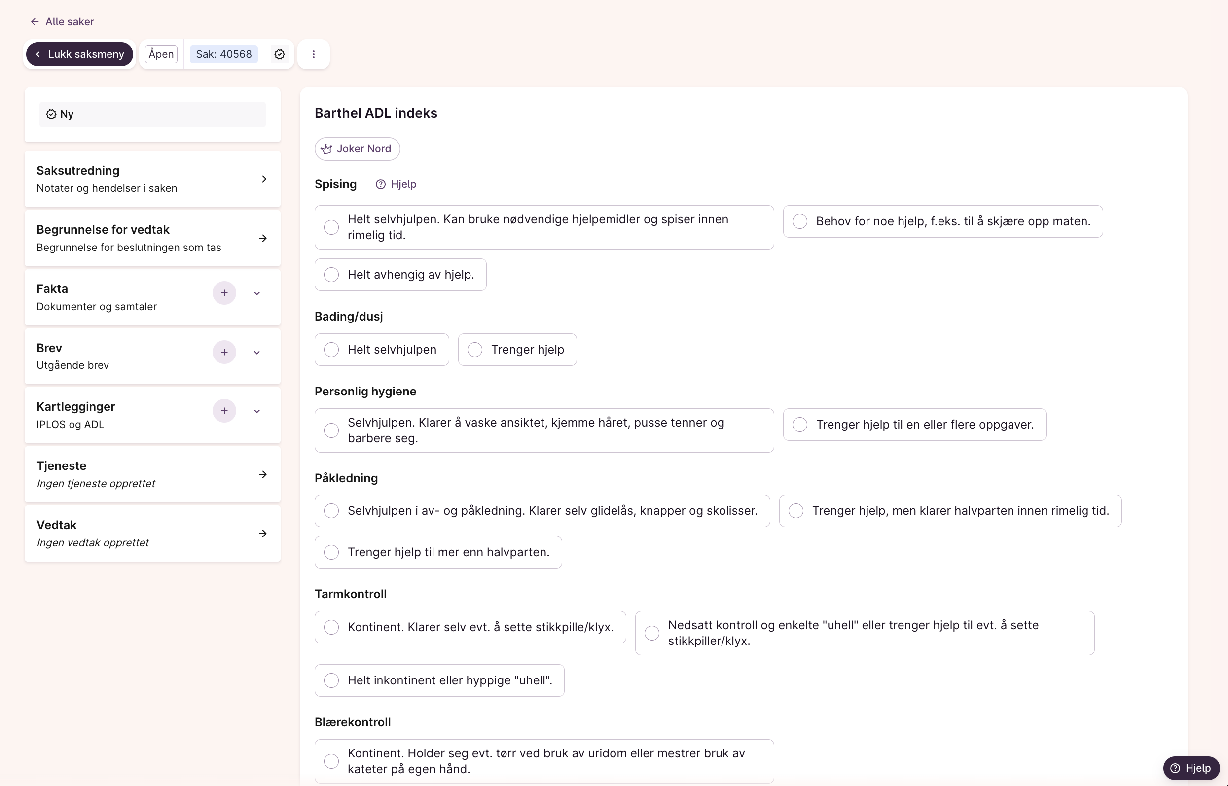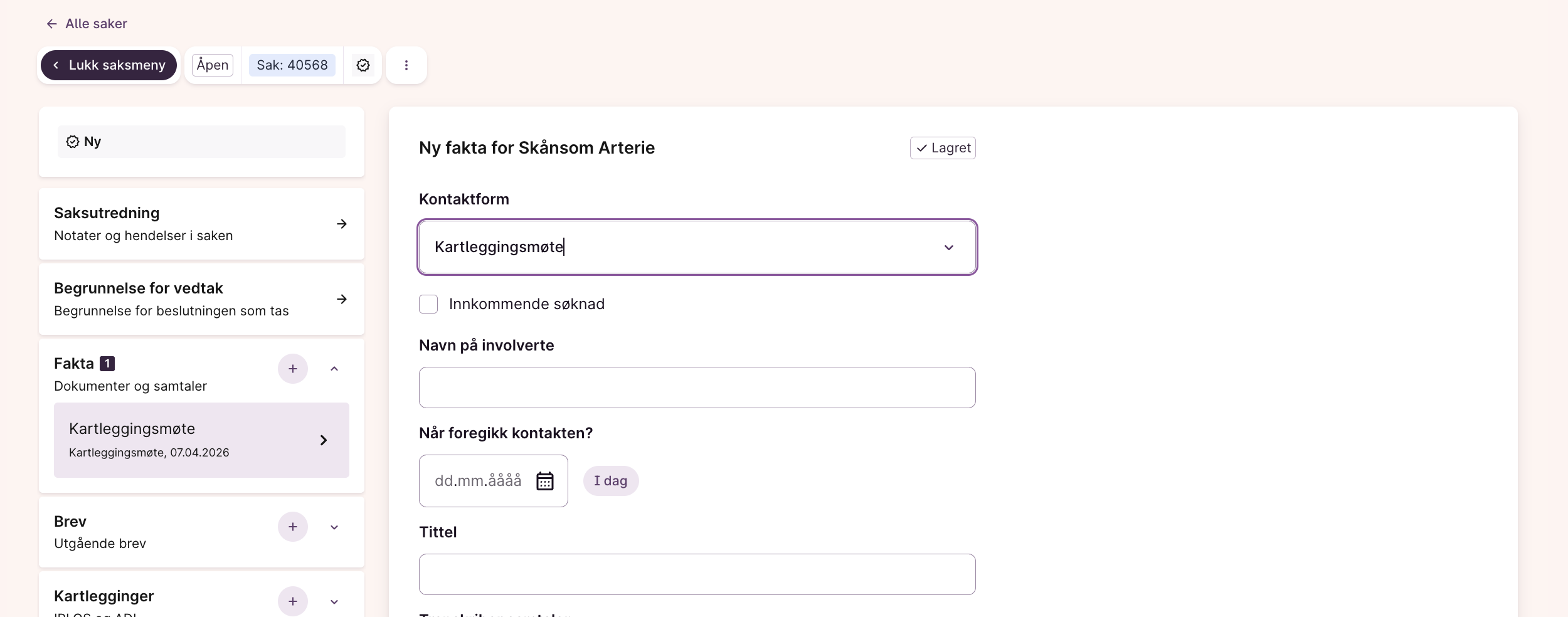 Skjermbilde: kartleggingsskjema inne på saken