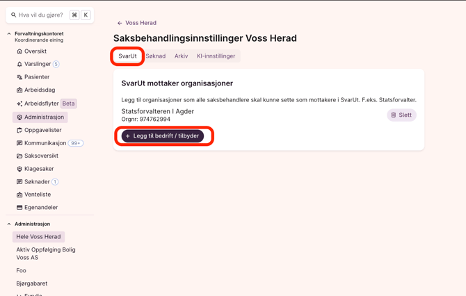 Slik legger du til Statsforvalter i kommunens nettverk og tilgjengeligjør utsendelse av klagesak via SvarUt