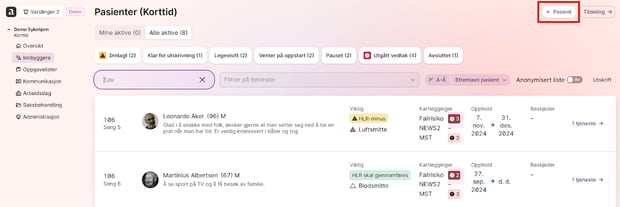 - Finn pasienten i listen og trykk på lenken til tjenesten.