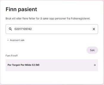 - Når riktig pasient vises, trykk på pasientnavnet.