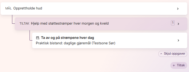 - Mål, tiltak og problemer foreslås med standardiserte og strukturerte titler fra kodeverket Snomed CT (ICNP).