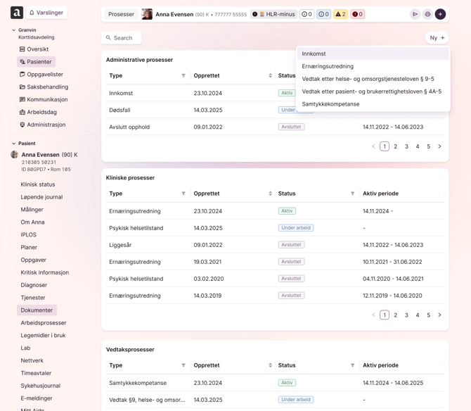 💡Alle prosesser henger tett sammen med pasientens plan og daglige oppfølging. Dokumentasjon og oppfølging skjer i planverktøyet.