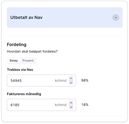 Tips: Den månedlige utbetalingen fra Nav er tilgjengelig like over der du setter fordelingen. Sjekk her hvor mye det er hensiktsmessig å be Nav om å trekke.