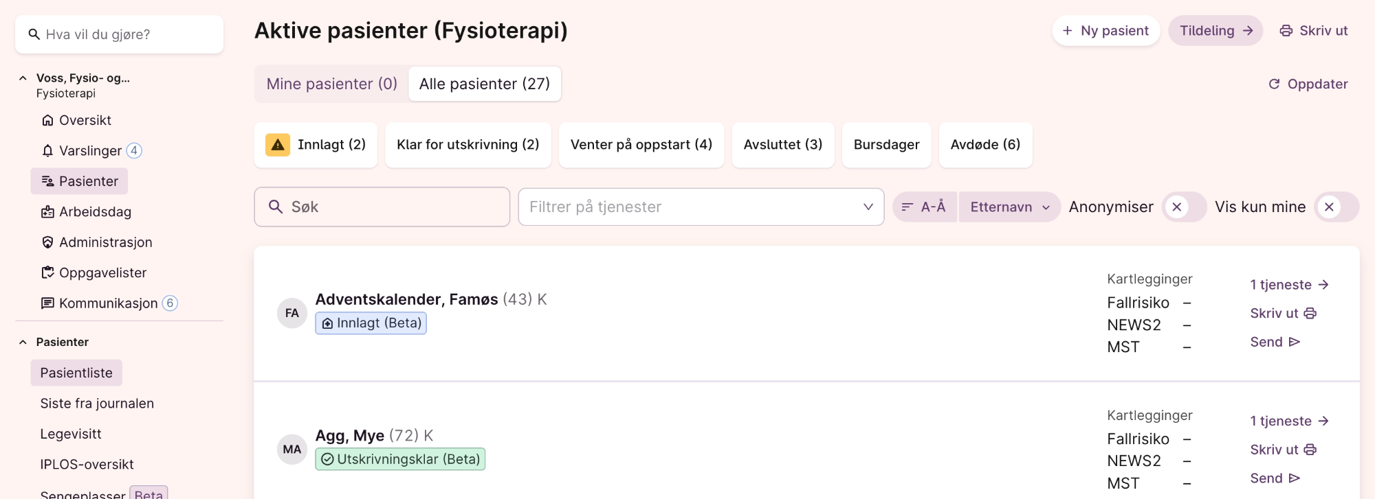 Status på sykehuset for pasientene dine
