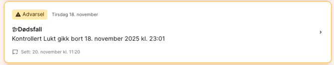 💡Aidn sender også varsel dersom en person har status som avdød i Folkeregisteret, men ikke registrert som død i Aidn. Dette varselet sendes kun såfremt personen har aktive tjenester i kommunen.