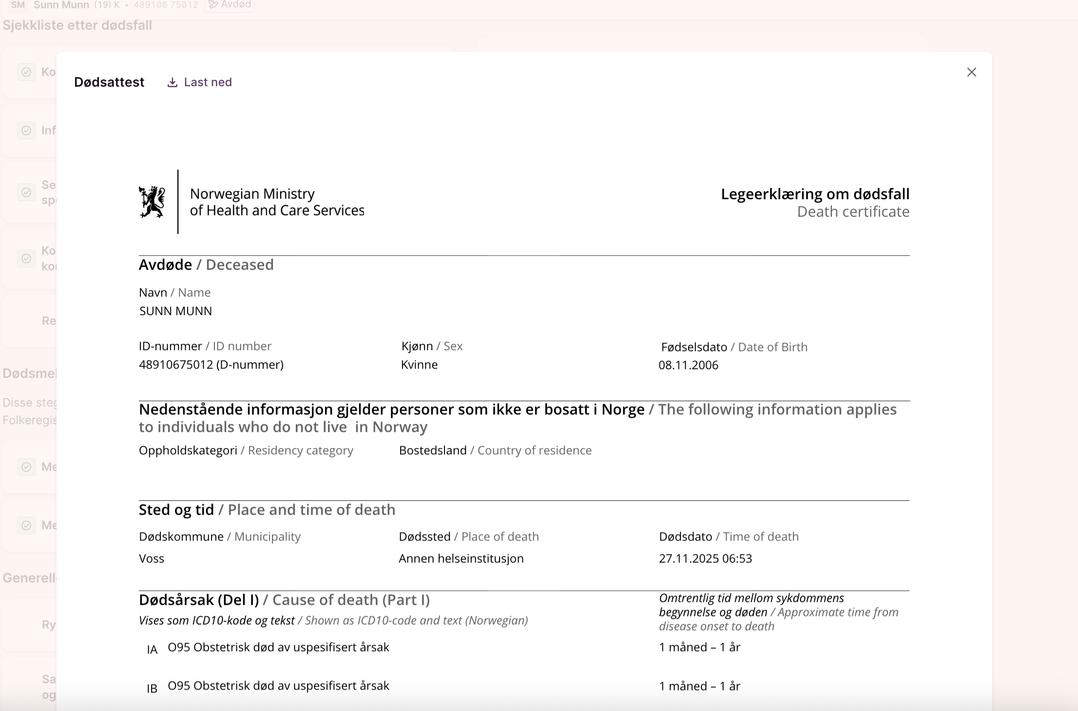 - Sende melding om dødsårsak til dødsårsaksregisteret