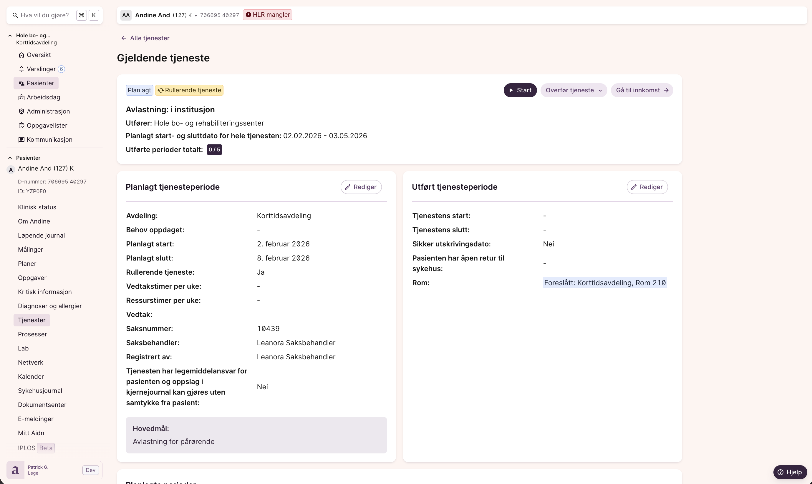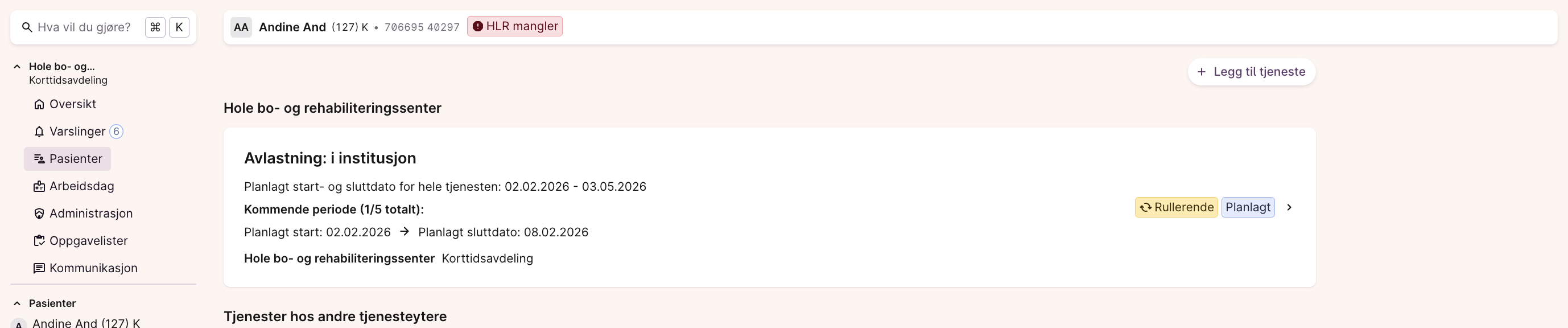 - I listen over tjenester en pasient mottar vil man se tjenesten ligge inne og markert som “rullerende”