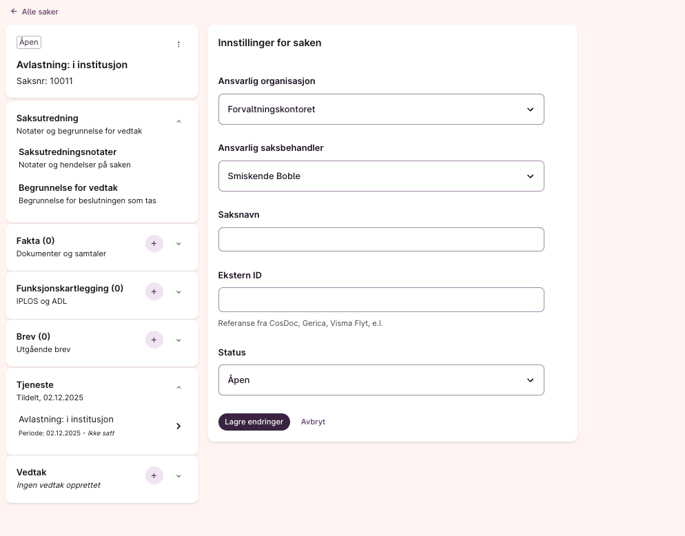 Etter å ha trykket på Saksinnstillinger vil man havne her: