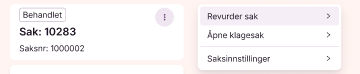 I menyen til høyre for saksnummeret vil også følgende handlinger være tilgjengelige dersom saken kvalifiserer til det: