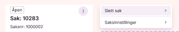 Saksinnstillinger finner man ved å trykke på ikonet til høyre for saksnummeret inne på saken.