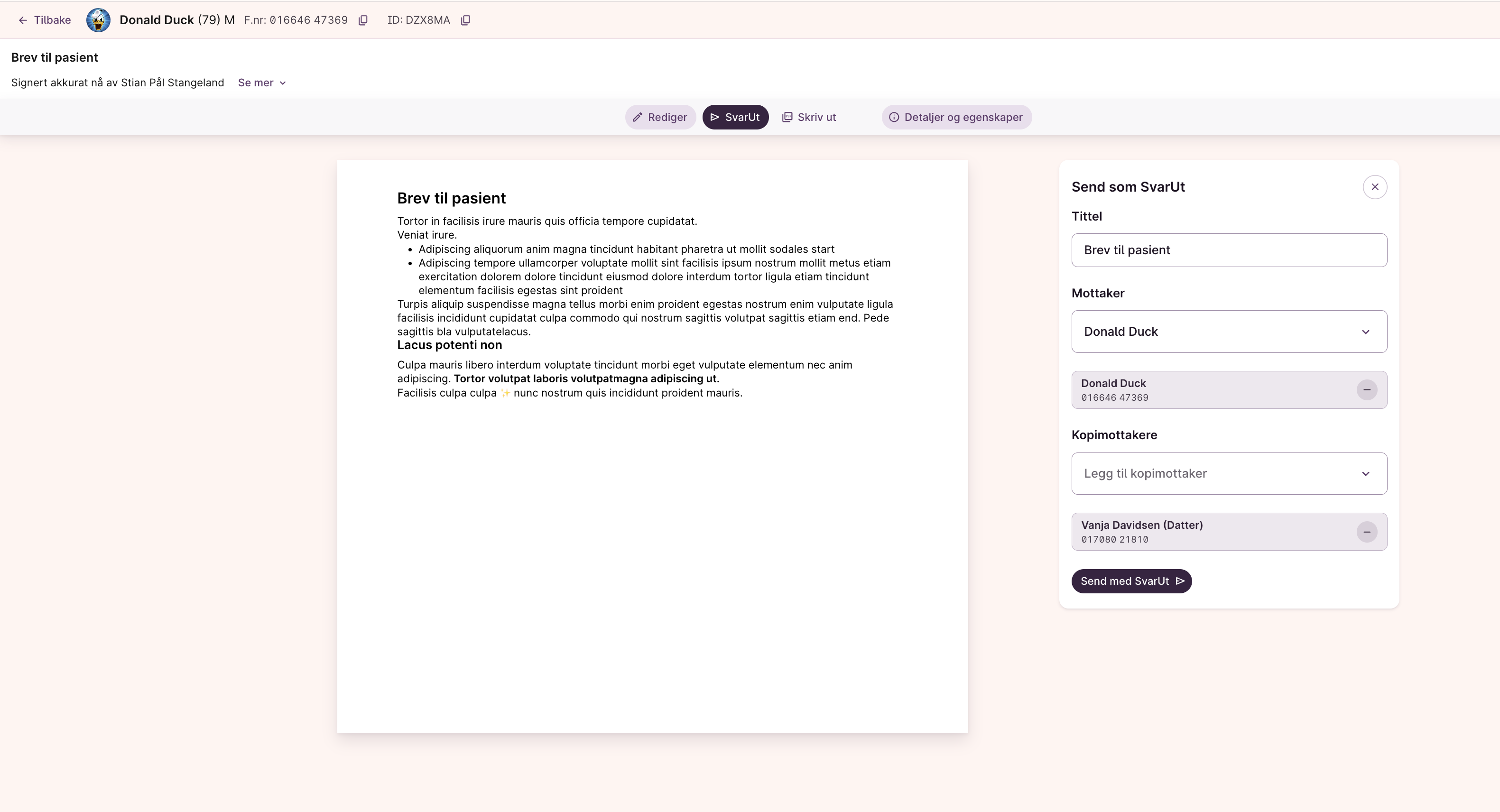 Send brev og dokumenter fra pasientjournalen via SvarUT