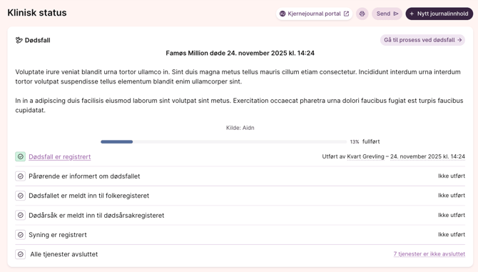 - Trykk Gå til prosess ved dødsfall fra Prosesser i venstremenyen eller fra Klinisk status.