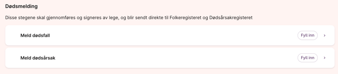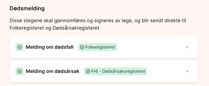 💡Melding om dødsårsak sendes nå automatisk til FHI. Status på forsendelsen vil vises i selve meldingen og i sjekklisten.