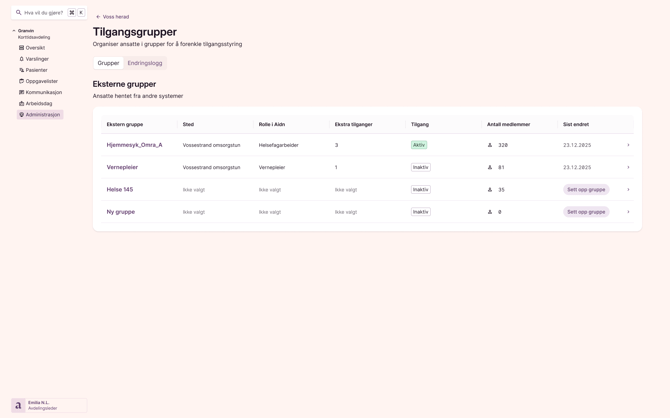 - Du ser faner for Grupper og Endringslogg