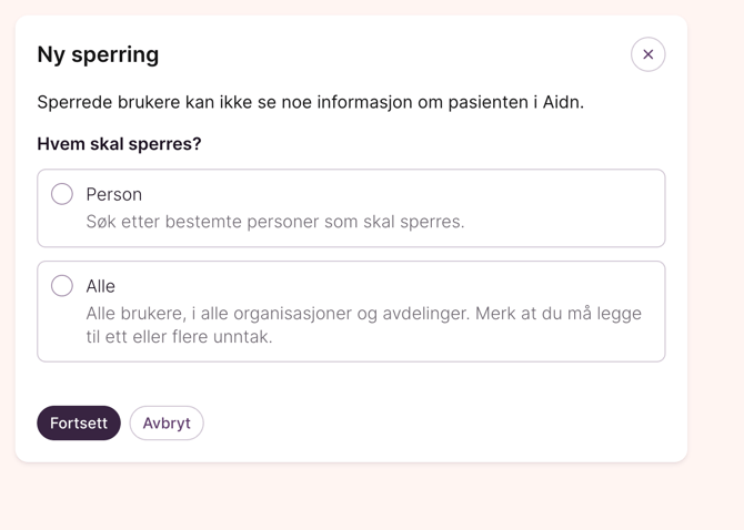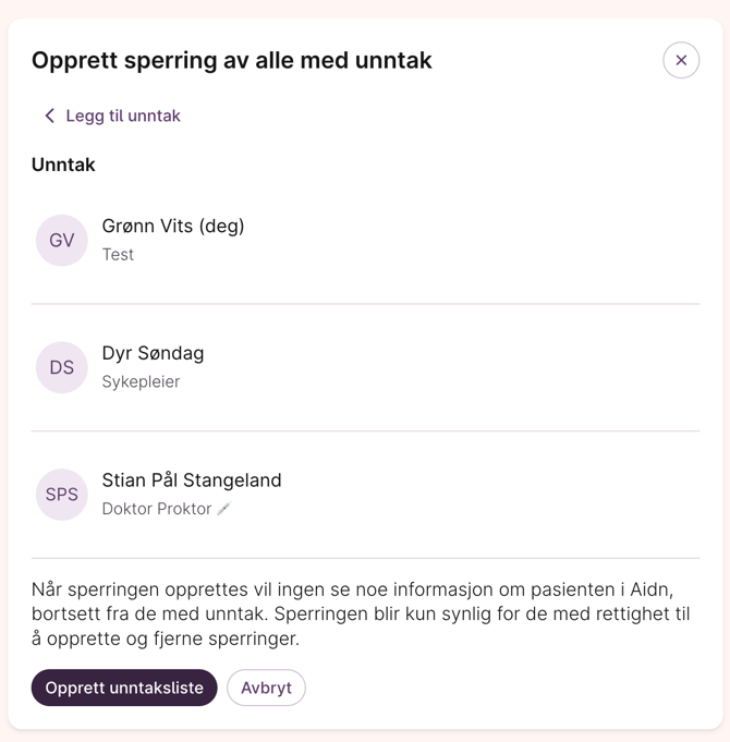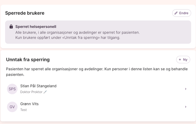 - Kun brukere under «Unntak fra sperring» kan se pasienten.