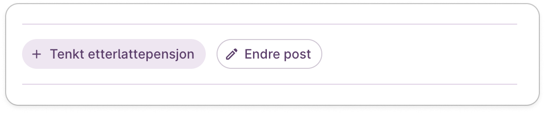 Klikk + Tenkt etterlattepensjon. Et skjema åpnes med to faner: Beregn ny og Bruk eksisterende.