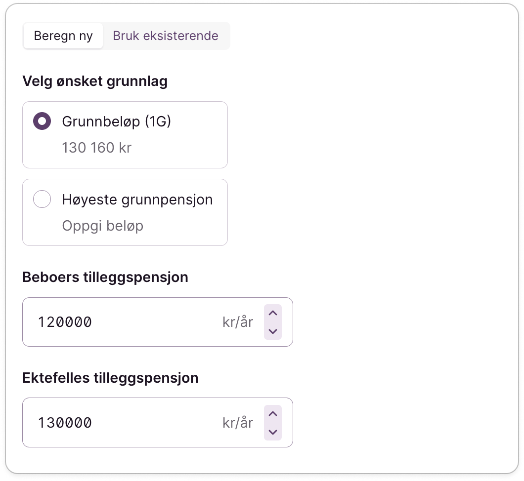 Dersom du har valgt å bruke Grunnpensjon vil det erstatte Grunnbeløp i utregningen.