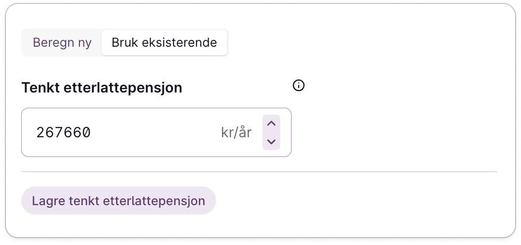 Klikk Lagre tenkt etterlattepensjon. Den vil nå bli tatt med i beregningen.