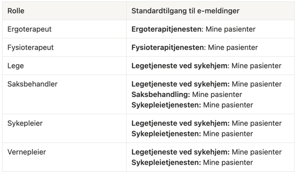 Noen roller får automatisk tilgang til å håndtere e-meldinger til bestemte adresser. Du kan alltid legge til flere tilganger ved behov.