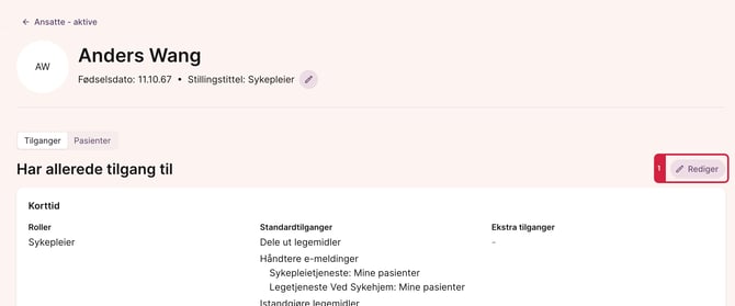 - Trykk på brukeren og velg "Rediger" for å oppdatere roller og tilganger.