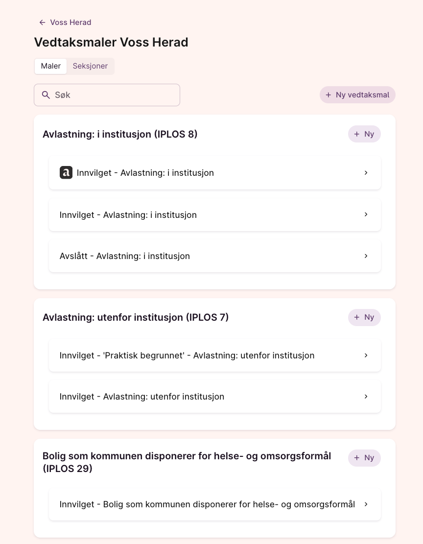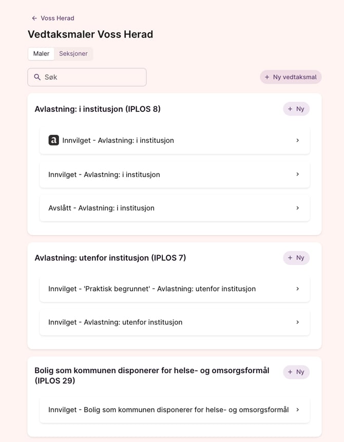 Vi har utviklet Aidn maler for å kunne tilby kommuner maler som skal gjøre det enklere for saksbehandlere å skrive vedtak. Malene er skrevet med fokus på klarspråk med en oppsummering av vedtak i begynnelsen, slik at pasienter og pårørende enkelt skal få en oversikt. Malene er også kvalitetsikret av en jurist og innholdsdesigner i Aidn.