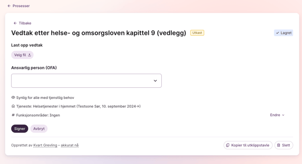 ❗ Hvis du allerede har et ferdig tvangsvedtak i PDF format kan du hoppe rett til steget “Last opp vedtak”.