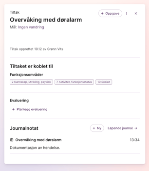 - Trykk Ny ved ved overskriften Journalnotat nederst i tiltaket